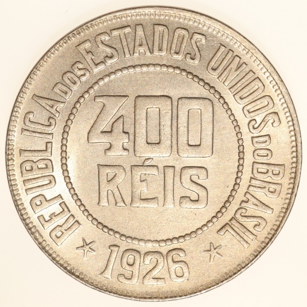 • Moeda do Brasil: 400 Réis 1926 - Flor de Cunho - Cuproníquel