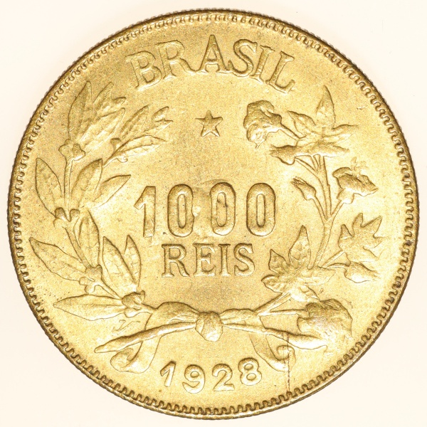 • Moeda do Brasil: 1000 Réis 1928 - Flor de Cunho   - Bronze Aluminio
