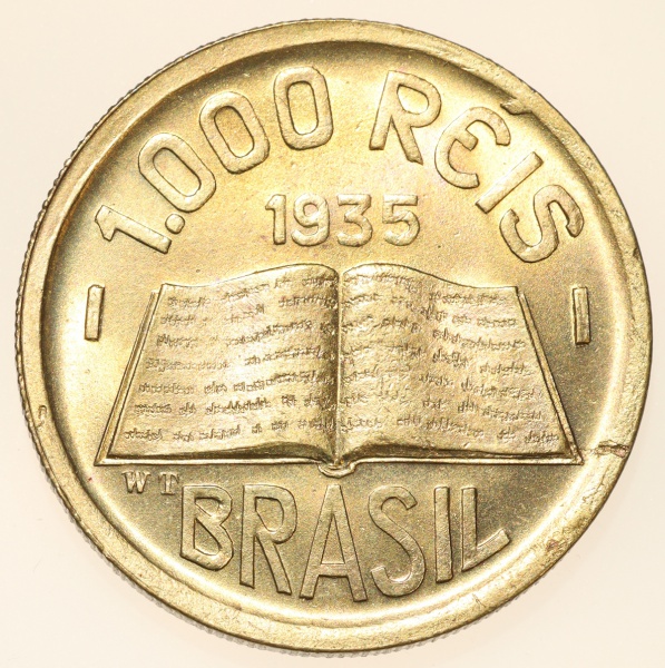 • Moeda do Brasil: 1000 Réis 1935 - Modulo maior - Flor de Cunho Exepcional   - Bronze Aluminio