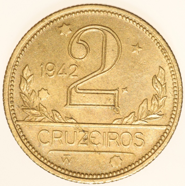 • Moeda do Brasil: 2 Cruzeiros 1942 - Flor de Cunho - Bronze Aluminio