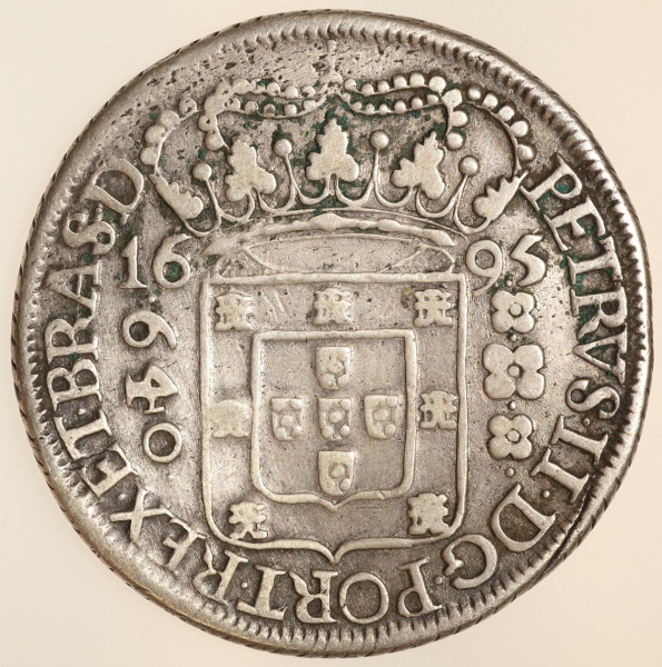 • Moeda do Brasil: 640 Réis 1695 Coroa Larga (B) - Al P112 - Prata - MBC/S