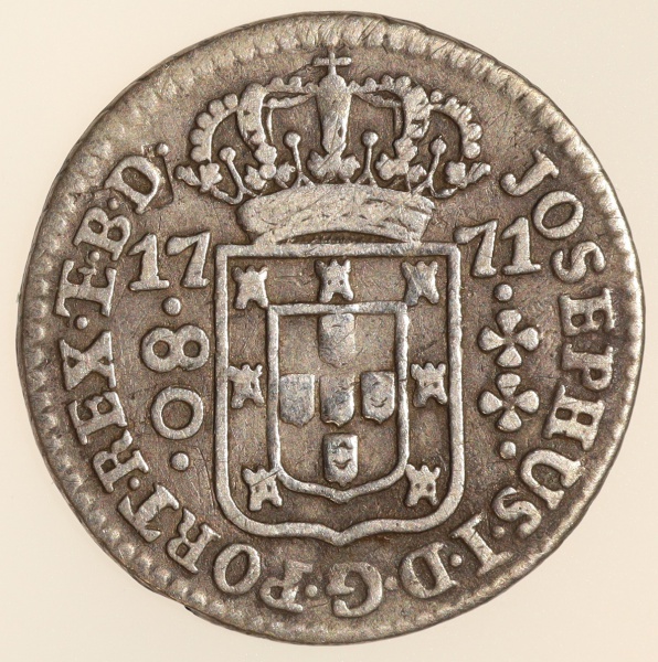 • Moeda do Brasil: 80 Réis 1771 (L) SUBQ - Al P177 - Prata - Sob