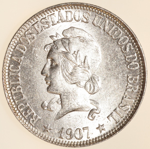 • Moeda do Brasil: 1000 Réis 1907 - Flor de Cunho - Maravilhosa - Belo brilho de cunhagem  -  Prata