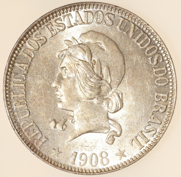 • Moeda do Brasil: 1000 Réis 1908 - Flor de Cunho - Maravilhosa - Belo brilho de cunhagem  -  Prata