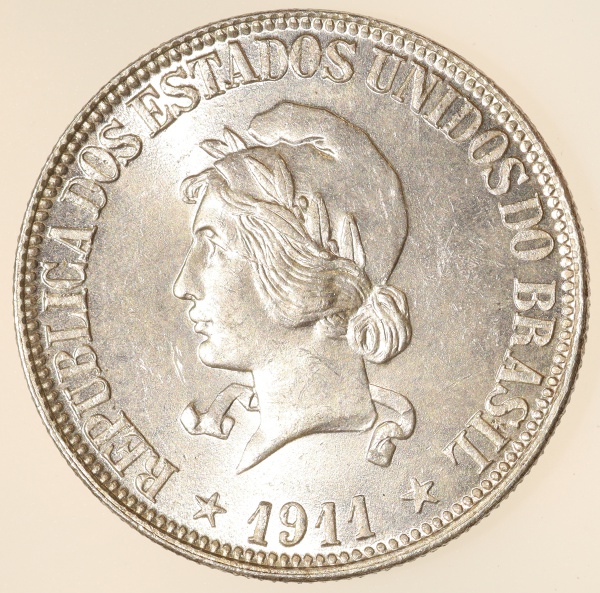 • Moeda do Brasil: 1000 Réis 1911 - Flor de Cunho - Maravilhosa - Belo brilho de cunhagem  -  Prata