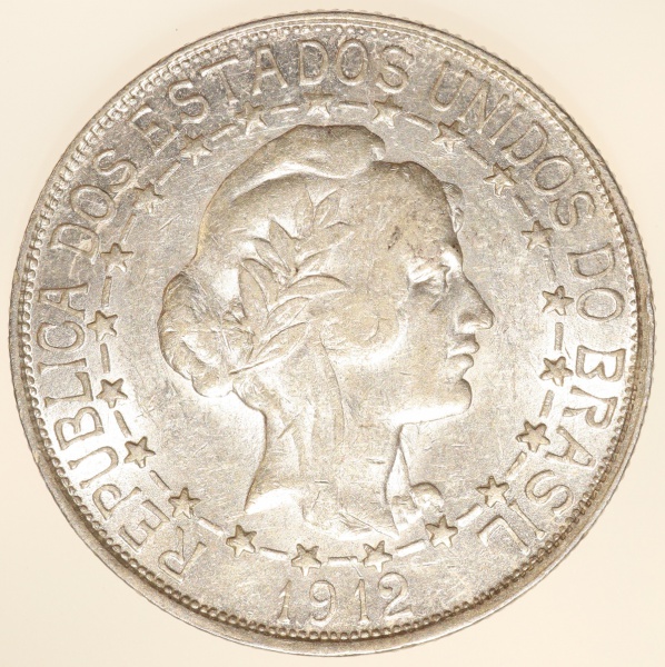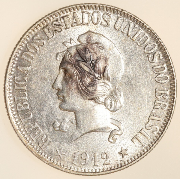 • Moeda do Brasil: 2000 Réis 1912 - Estrelas Ligadas - Flor de Cunho - Belo brilho de cunhagem -  Prata