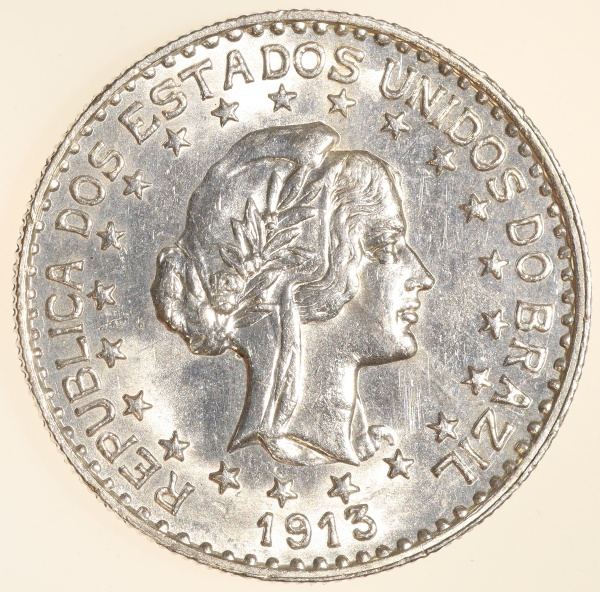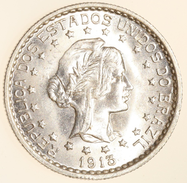 • Moeda do Brasil: 1000 Réis 1913 - Estrelas Soltas - Flor de Cunho Exepcional - Maravilhosa  -  Prata