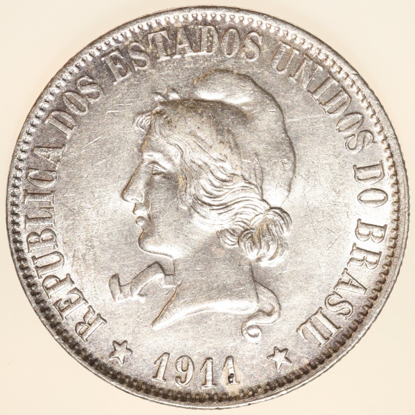 • Moeda do Brasil: 2000 Réis 1911 - Flor de Cunho - Linda  -  Prata