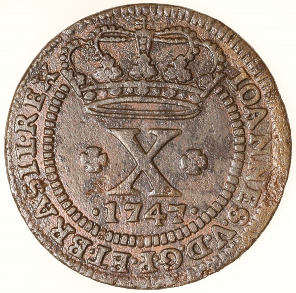 • Moeda do Brasil: X Réis 1747 Bahia - Soberba - Muito dificil nesse estado -  Cobre