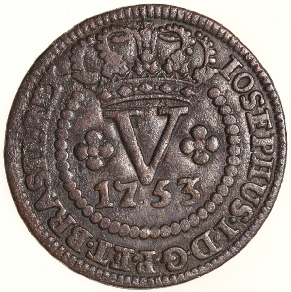 • Moeda do Brasil: V Réis 1753 - Soberba / Flor de Cunho  -  Cobre