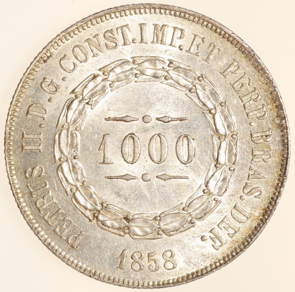 • Moeda do Brasil: 1000 Réis 1858 - Flor de Cunho  -  Prata