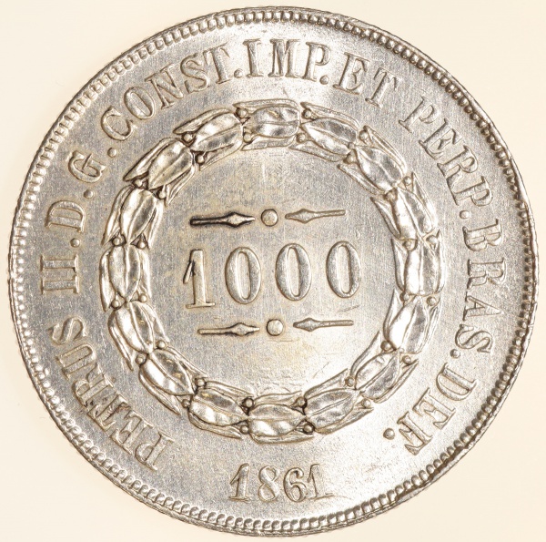 • Moeda do Brasil: 1000 Réis 1861 - Soberba / Flor de Cunho - Lindo brilho de cunhagem -  Prata