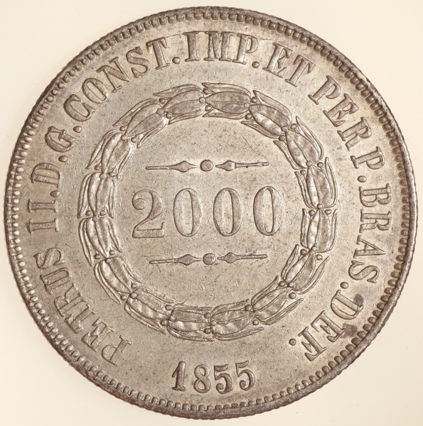• Moeda do Brasil: 2000 Réis 1855 - Flor de Cunho - Maravilhosa -  Prata