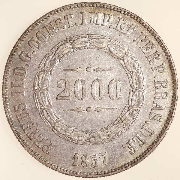 • Moeda do Brasil: 2000 Réis 1857 - Flor de Cunho - Maravilhosa -  Prata