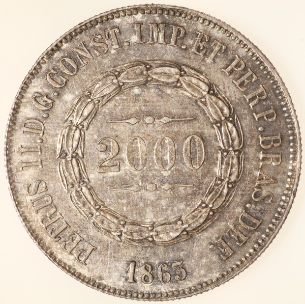 • Moeda do Brasil: 2000 Réis 1863 - Soberba / Flor de Cunho - Maravilhosa -  Prata