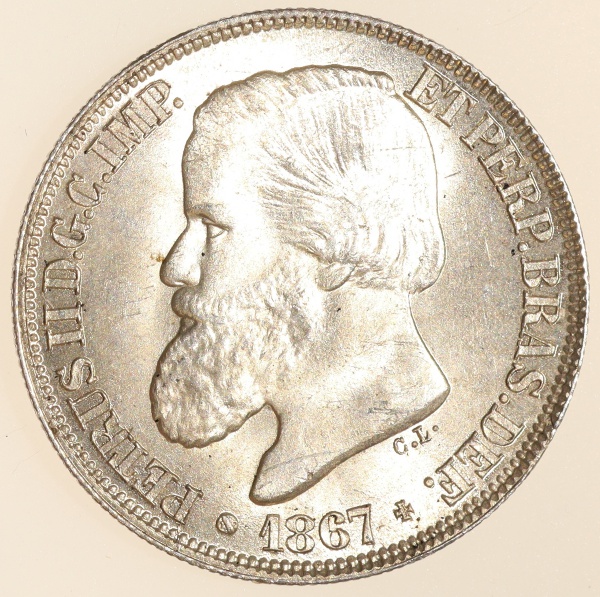 • Moeda do Brasil: 200 Réis 1867 - Busto - Flor de Cunho Exepcional - maravilhosa -  Prata