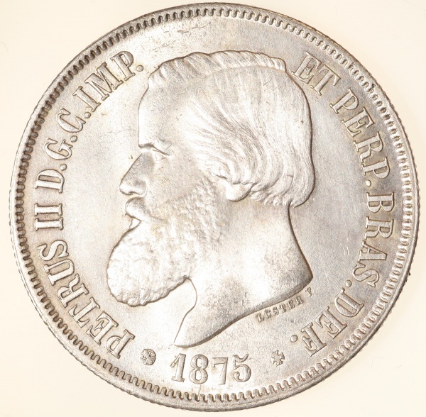 • Moeda do Brasil: 2000 Réis 1875 - LUSTER DUPLO - Flor de Cunho - Maravilhosa - Belo brilho de cunhagem -  Prata