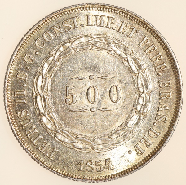 • Moeda do Brasil: 500 Réis 1854 - Flor de Cunho  - Prata