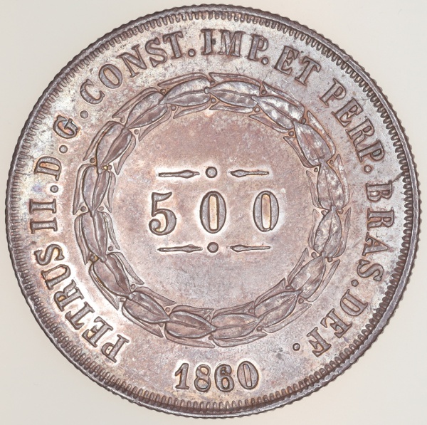 • Moeda do Brasil: 500 Réis 1860 - Flor de Cunho -  Prata