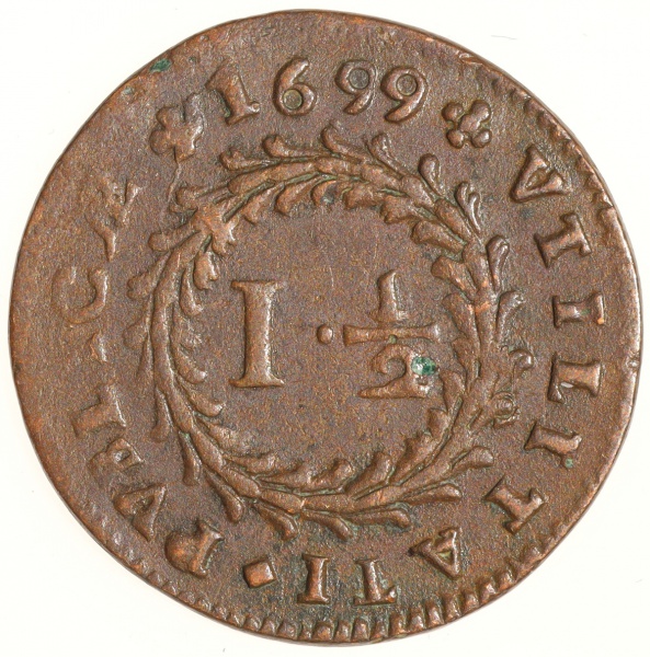 • Moeda de Portugal: 1 1/2 Réis 1699 - Cobre