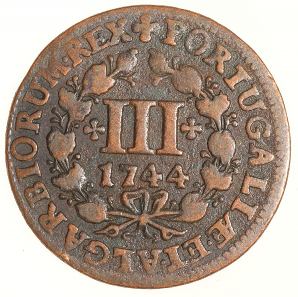 • Moeda de Portugal: lll Réis 1744   - Cobre