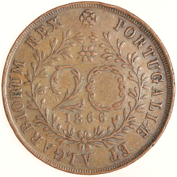 • Moeda de Portugal: 20 Réis 1866  - Bronze