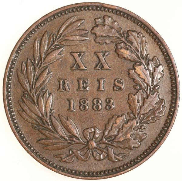 • Moeda de Portugal: XX Réis 1883  - Bronze