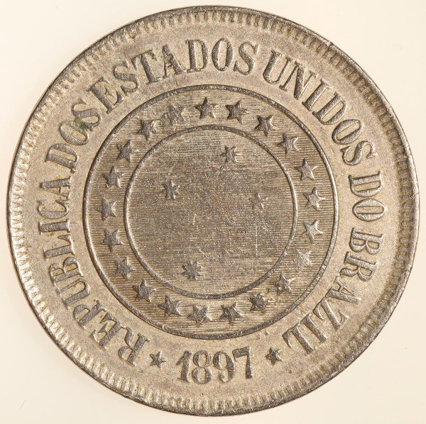 • Moeda do Brasil: 200 Réis 1897 - Al V050 - Niquel - Sob/FC