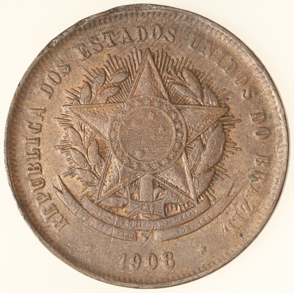 • Moeda do Brasil: 20 Réis 1908 - Bronze