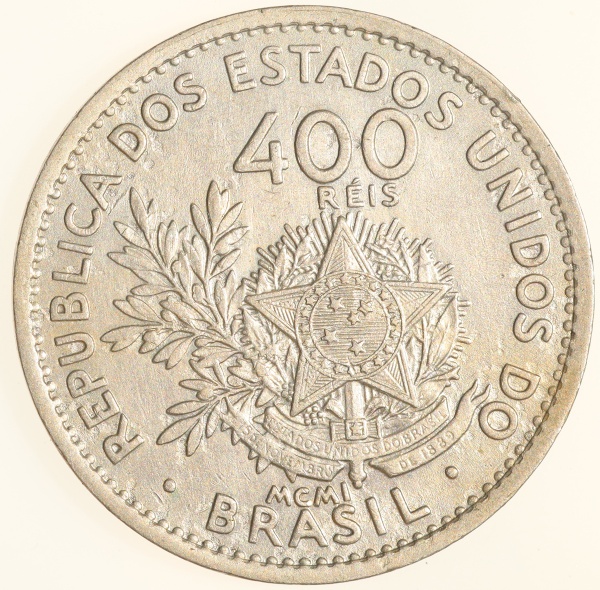 • Moeda do Brasil: 400 Réis 1901 - Al V056 - Niquel - Soberba / Flor de Cunho