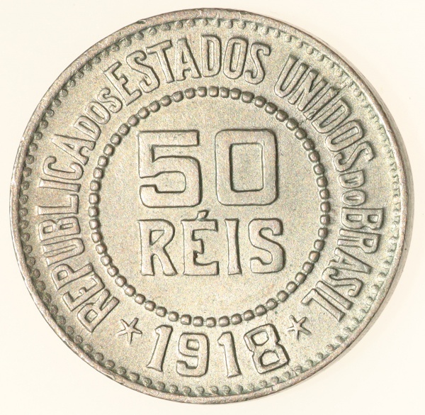 • Moeda do Brasil: 50 Réis 1918 - Soberba / Flor de Cunho
