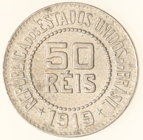• Moeda do Brasil: 50 Réis 1919 -  Flor de Cunho