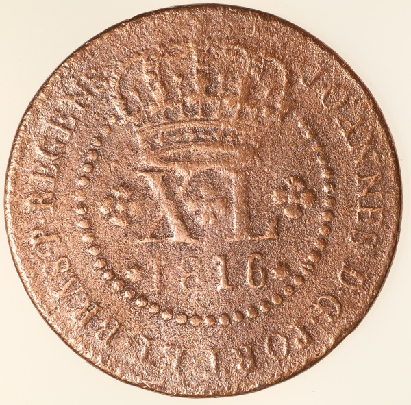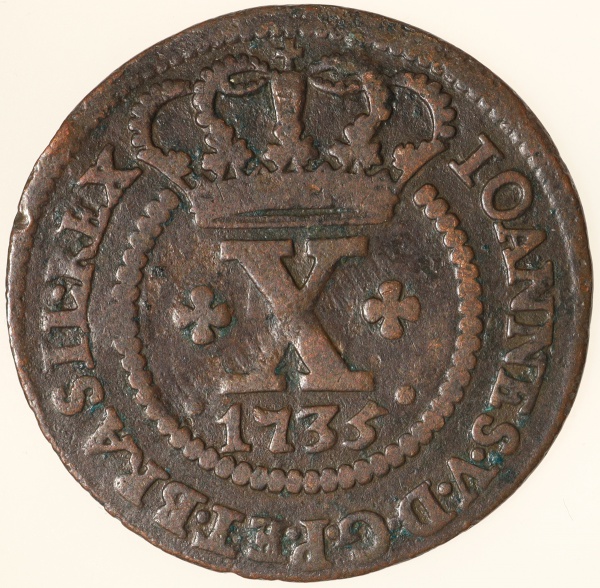 • Moeda do Brasil: X Réis de 1790, 46 Pérolas com carimbo de escudete - Cobre