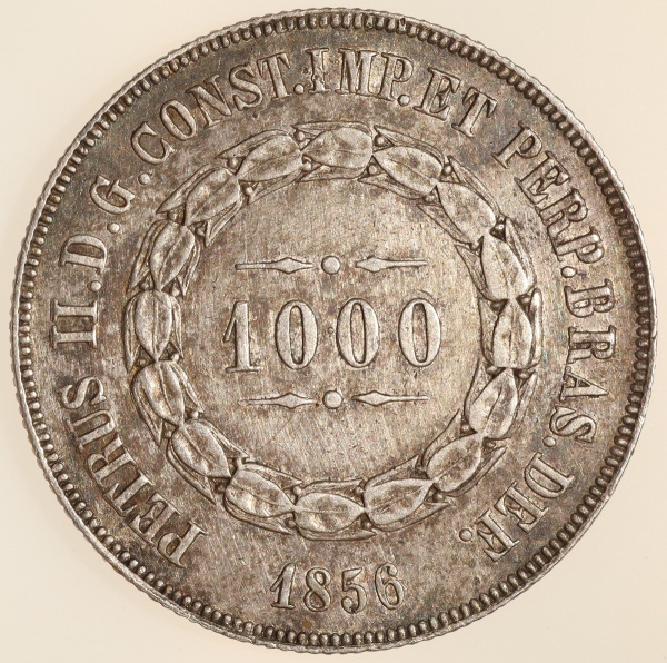 • Moeda do Brasil: 1000 Réis 1856 - Al P604b - 10.00 Ponto entre Zeros - Prata - Sob