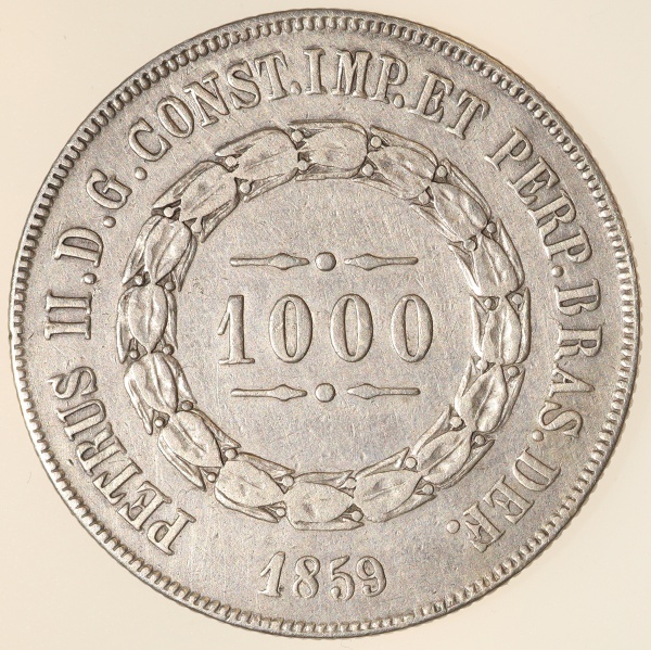 • Moeda do Brasil: 1000 Réis 1859 - Al P607 - Prata - Sob-