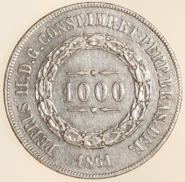 • Moeda do Brasil: 1000 Réis 1861 - Al P609 - Data Emendada - Prata - Sob-