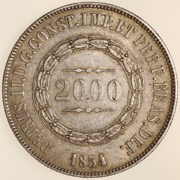 • Moeda do Brasil: 2000 Réis 1854 - Al P616 - Prata - Sob