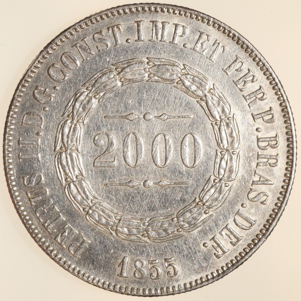 • Moeda do Brasil: 2000 Réis 1855 - Al P617 - Prata - Sob