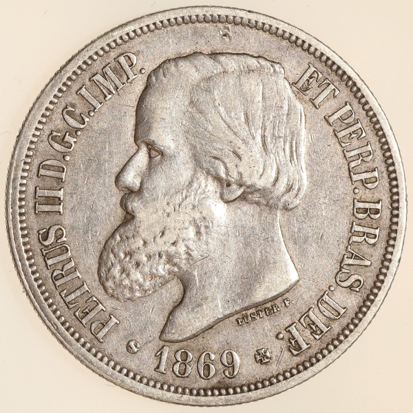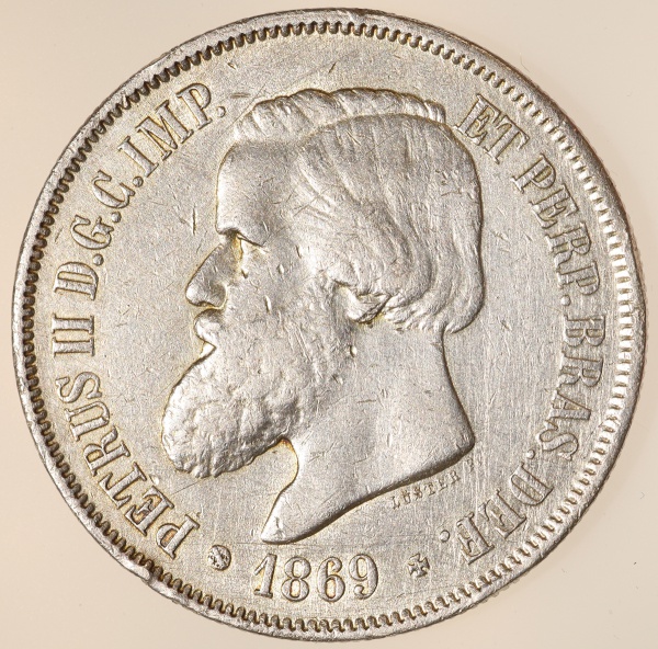 • Moeda do Brasil: 2000 Réis 1869 - Al P634 - Prata - Sob