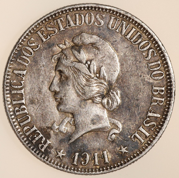 • Moeda do Brasil: 1000 Réis 1911 - Al P691 - Prata - Sob