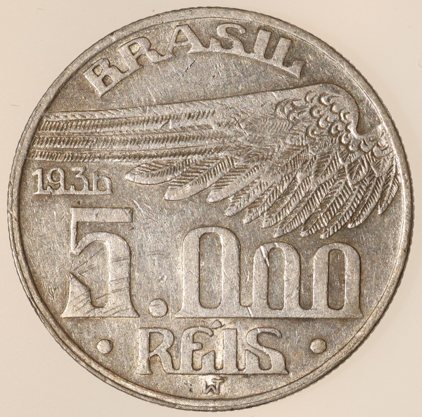 • Moeda do Brasil: 5000 Réis 1936 - AI P721 - Prata - Sob