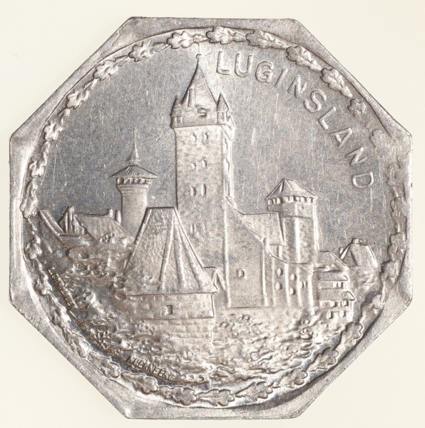 • Moedas da Alemanha: Moeda de 20 Pfennige usadas nos Trams e Bondes da época de alta inflacao de 1917 a 1923 (Notgeld) - LUGINSLAND  - Alumínio