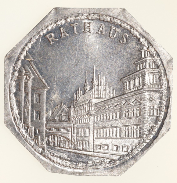 • Moedas da Alemanha: Moeda de 20 Pfennige usadas nos Trams e Bondes da época de alta inflacao de 1917 a 1923 (Notgeld) - RATHAUS  - Alumínio