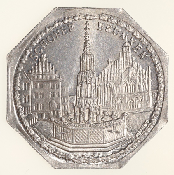 • Moedas da Alemanha: Moeda de 20 Pfennige usadas nos Trams e Bondes da época de alta inflacao de 1917 a 1923 (Notgeld) - SCHONER BRUNNEN  - Alumínio