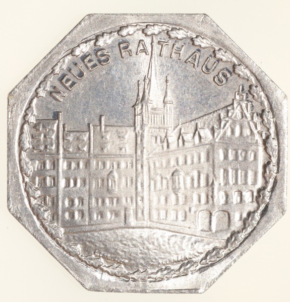 • Moedas da Alemanha: Moeda de 20 Pfennige usadas nos Trams e Bondes da época de alta inflacao de 1917 a 1923 (Notgeld) - NEUES RATHAUS  - Alumínio