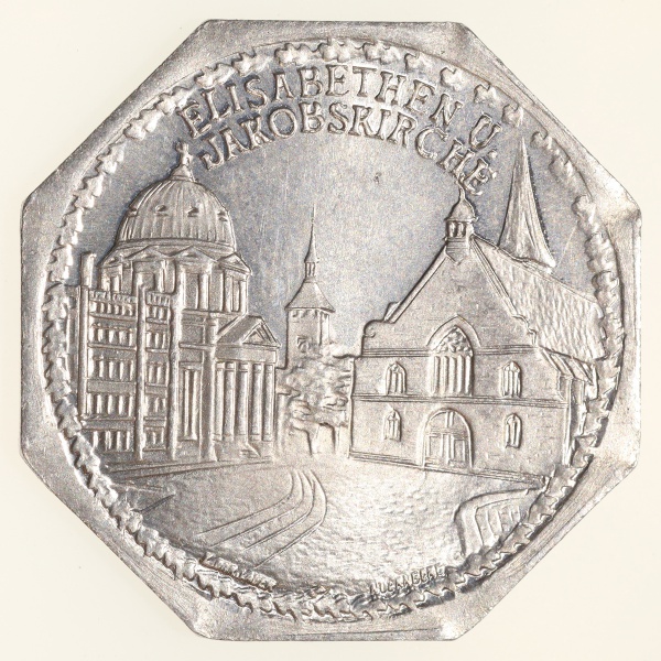 • Moedas da Alemanha: Moeda de 20 Pfennige usadas nos Trams e Bondes da época de alta inflacao de 1917 a 1923 (Notgeld) - ELISABETHEN U. JAKOBSKIRCHE  - Alumínio