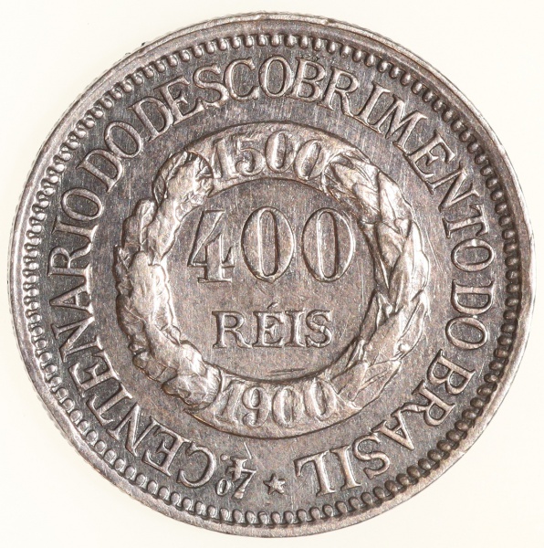 • Moeda do Brasil: 400 Réis 1900 - 4 Centenário do Descobrimento do Brasil - Soberba / Flor de Cunho - Maravilhosa - Prata