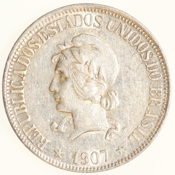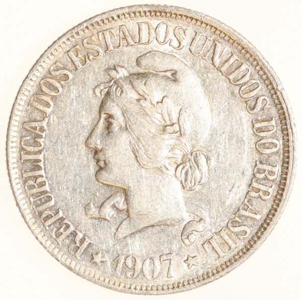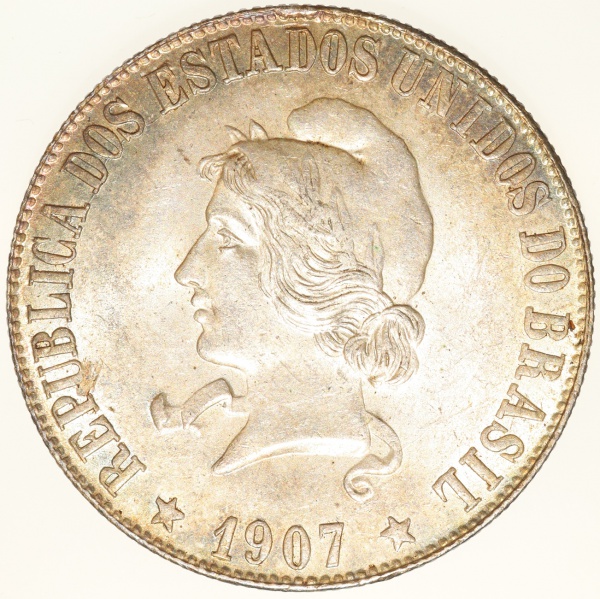 • Moeda do Brasil: 2000 Réis 1907 - Flor de Cunho - Prata