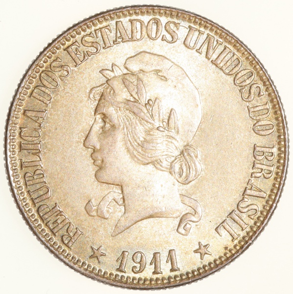 • Moeda do Brasil: 1000 Réis 1911 - Flor de Cunho - Prata
