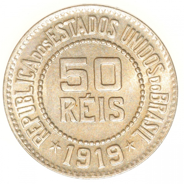 • Moeda do Brasil: 50 Réis 1919 - Flor de Cunho